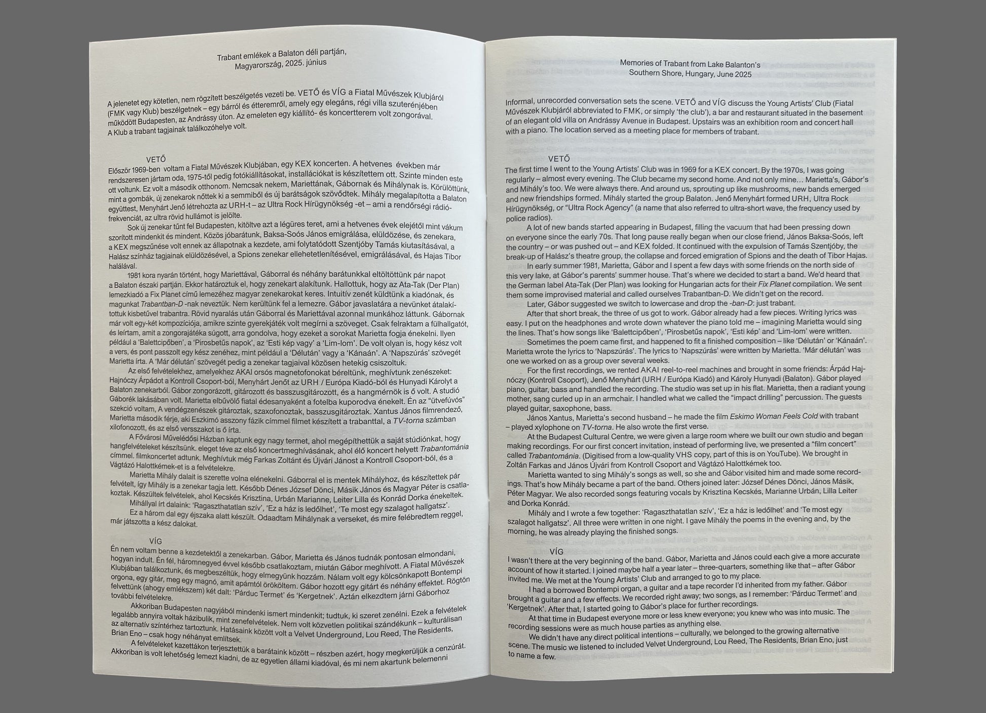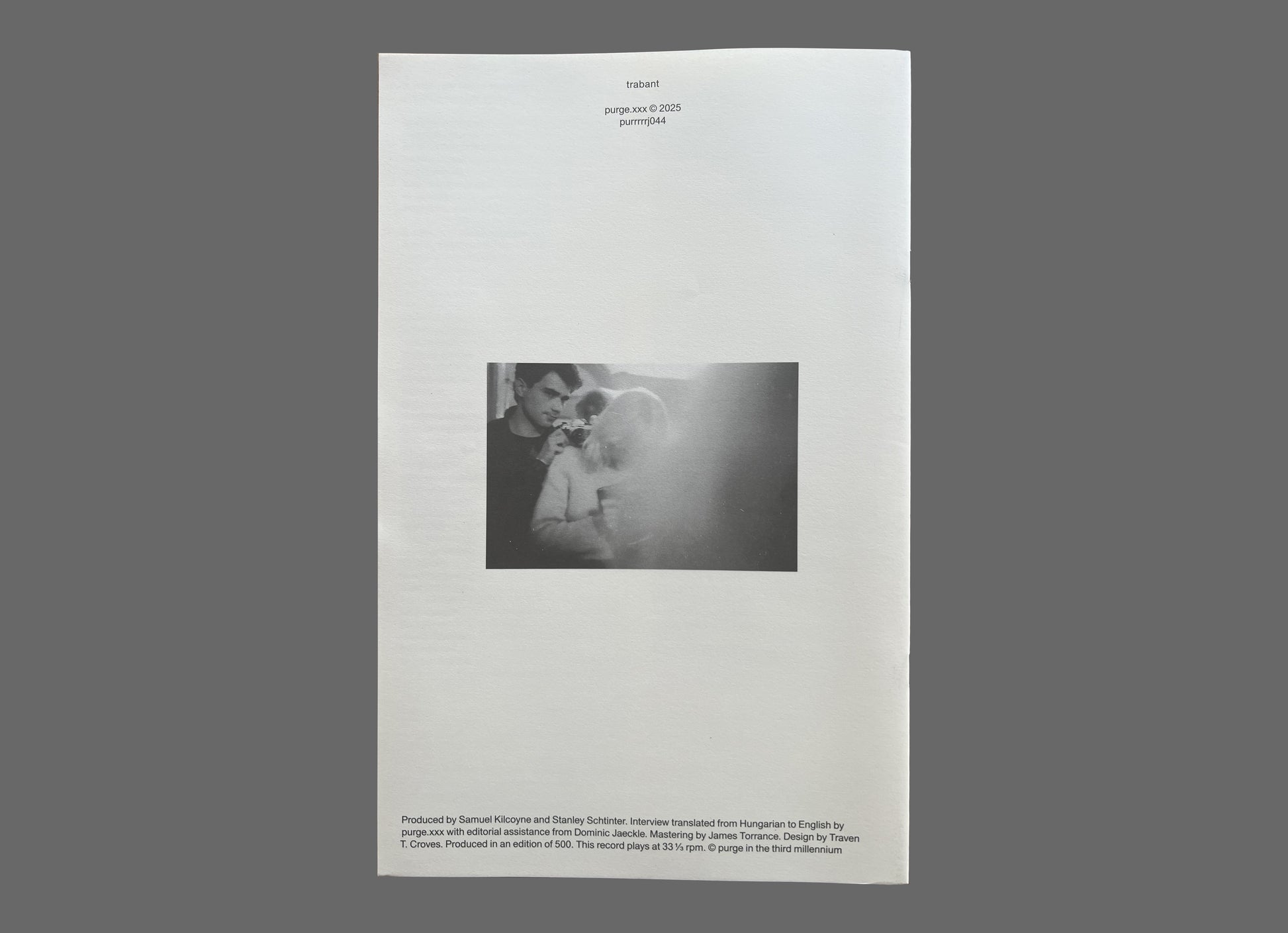 Active between 1980 and 1987, Trabant was one of the most remarkable Hungarian gestures of countercultural creativity, flowering from behind the iron curtain during the period of its run. A loose collective of young songwriters and amateur musicians, with a continuously evolving lineup of contributors, including Mihály Víg, János Vető, György Kozma, Károly Hunyady, Gábor Lukin, János Xantus and József Dénes "Dönci", the visual artist and actress Marietta Méhes, and numerous others. Forced into the margins by their membership within Hungary's explicitly outlawed, anti-authoritarian underground music scene, the group's only official release, prior to Purge's first collection, was a promotional 7" for a film in which the core members starred. Given the circumstances within which they worked, Trabant rarely performed publicly and never worked in studios, but were remarkably prolific, writing songs and producing a body of hundreds of individual DIY recordings, conceived for future release, and occasional appearances in films. It is this sprawling body of largely (if not exclusively) never-before-released archival recordings from which the label's second collection dedicated to the band, Trabant II, has been drawn.